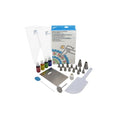 25 Pc Cake and Food Decorating Kit, includes 10 and 12 decorating bags, 12 assorted tips, flower nail, coupler, plastic spatula, comb smoother, cake tester, and 4 gel colors, made in the USA