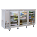 Back Bar Cooler 72 W x 24 D , Stainless Steel exterior, 3-Glass doors