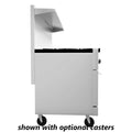 | Construction | Stainless steel front, sides, backriser, and lift-off high shelf; fully welded chassis/frame |