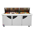 Built for fast assembly and organized ingredients, this three section sandwich and salad prep table pairs a large pan opening with a ready to work top.