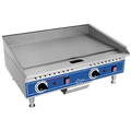 Griddle, electric, countertop, 24"W, plate depth of 13", (2) 70° -575°F thermostat control, on/off switch for each element, 3/8" thick griddle surface, stainless steel removable catch tray (4-1/2 cup capacity), splash guard on (3) sides, 3-1/2" stainless steel adjustable feet, 208/240v/60/1-ph, 2.7/3.6kW, 13/15 amps, 4-ft" flexible power cord, NEMA 6-20P, NSF, cULus