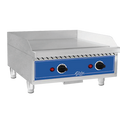Griddle, electric, countertop, 24", stainless steel plate & cool-to-touch front edge, 1/2" thick polished cooking surface, on/off switch for ea. element, thermostatic controller, removable catch tray (4.5 cup capacity), splash guard on 3 sides, spatula-wide trough, 3-1/2" stainless steel adjustable feet, 208/240v/60/1-ph, 4.2/5.6kW, 20.2/23.3 amps, unit must be hard wired, NSF, cULus
