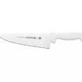 Sandwich Knife, 8", wide, serrated edge, high carbon/no stain blade, molded white polypropylene handle, treated with sanitized antimicrobial protection, NSF (snap)