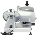 Globe's G12 is a mediumduty, manual gravity-feed slicer built for consistent meat and cheese slicing in mid-volume kitchens. Its 12-inch hardchromed, hollowground blade and grooved belt drive pair with a 1/2 HP motor for clean, precise cuts up to 9/16 inch thick. An extended chute and redesigned end weight secure product up to 10.5 inches tall for better control and slice quality. Rugged anodized aluminum construction, sealed splash zones, and tool-free removable parts streamline cleaning and sanitation.
