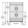 Half doors reduce the space needed in front of the cabinet compared with full-height doors, helping with aisle and prep-line layouts.