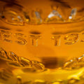 • Embossed vintage-style text and motifs pressed into soda lime glass