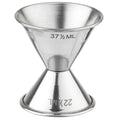 Both sides of this double jigger feature stamped measurement markings so bartenders can identify volume at a glance, even during a busy rush. One side holds 3/4 oz (22.5 mL) and the other holds 1-1/4 oz (37.5 mL), giving staff the precision they need for consistent cocktail recipes every time.