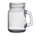 Each glass features a classic mason jar silhouette with a sturdy integrated handle for a comfortable, secure grip. The clear glass body lets the color and character of every pour speak for itself.