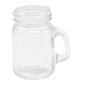Clear glass mini mason jar mug with handle and threaded rim, viewed from a front angle on white background