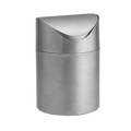 Tablecraft WM1 stainless steel mini countertop waste basket with swing-style lid closed, silver finish