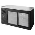 Refrigerated Back Bar Cooler, two-section, 60"W, (101) 6-pack cans or (63) 6-pack bottles capacity, side mounted self-contained refrigeration, (2) sliding glass doors, (6) adjustable shelves, LED interior lighting, stainless steel countertop, black powder coated exterior, stainless steel interior (sides & floor), R290 Hydrocarbon refrigerant, 1/4 HP, 115v/60/1-ph, 3.2 amps, NEMA 5-15P, cULus, UL EPH Classified, Made in USA