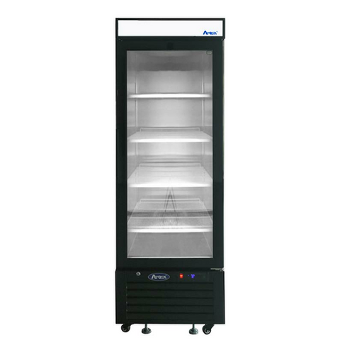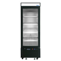 Refrigerator Merchandiser, one-section, 24-1/5"W x 24"D x 63-1/5"H, bottom-mounted self-contained refrigeration, 8.3 cu. ft., (1) self-closing hinged glass door with lock, Dixell electronic controller, 33° to 40°F temperature range, (3) shelves, LED interior lighting, lighted header panel, stainless steel interior, black steel exterior, 2" casters, R290 Hydrocarbon refrigerant, 1/7 HP, 115v/60/1-ph, 2.1 amps, cord, NEMA 5-15P, cETLus, ETL-Sanitation