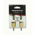 Liquor Bottle Pourer, 4-1/16" long, without collar, black cap, agglomerate natural cork, stainless steel spout (8004), 2-per card (carded)