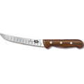 Boning Knife, 6" blade, curved, extra wide stiff blade, granton edge (hollowed out grooved on the side of blade) rosewood handle, high carbon steel