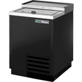 True Manufacturing TD-24-7-HC black bottle cooler with stainless steel slide lid and bottom-mounted compressor
