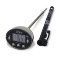 Digital Thermometer, -40 to +450°F (-40 to +230°C), 6 second response, 1.5mm thin tip, 5" (12.7cm) stem, field calibration, waterproof, shatterproof, data-hold, big digit, on/off button, auto-off, sheath can be used as handle extension, pocket clip, food-safe ABS plastic with BioCote®, 304 stainless steel housing, NSF