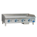 • 48 in countertop thermostatic gas griddle with adjustable temperature range of 200 to 575°F for precise cooking control