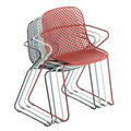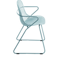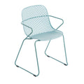 Ramatuelle '73 Armchair, stackable, lattice design resin back, solid resin seat, powder-coated steel legs UV and weather resistant, ASTM rated, designed for indoor/outdoor use, blue ether, Made in China