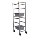 Storage Rack, open sides, 18"W x 26"D x 70"H, aluminum, holds (6) 15" x 20" storage boxes, 5" swivel casters, ETL (ships KD)
