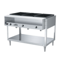 The Vollrath ServeWell 38119 electric hot food table is a stationary, single-sided steam table built to hold hot menu items at safe serving temperatures. It features five sealed, thermoset fiber-reinforced resin wells designed to resist pitting and rust, with thermostatic controls that self-adjust as water temperature and food load change. A low-water indicator helps operators maintain proper wet operation, while the stainless steel top and undershelf add durability and storage. This model includes an 8-inch-wide poly cutting board and a recessed plate shelf for faster service on the line.