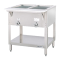 Designed for serving lines and buffet service, the Duke E302SW Aerohot hot food table pairs sealed wells with operator-side workspace and open storage below.