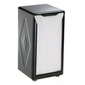 The H900BK Classic Tabletop Napkin Dispenser keeps countertops tidy with a slim footprint sized at 3.75" W x 4" D x 7.5" H. Its upright form holds a full stack of 150 tallfold napkins without consuming excess table real estate.