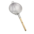 Strainer, 13-3/4 in; dia., reinforced, tinned, double medium mesh, hand wash only, round wooden handle