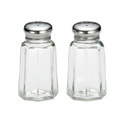 Salt/Pepper Shaker, 1 oz., 1-9/16 in; dia. x 3 in;H, clear paneled glass, dishwasher safe, stainless steel tops (fits rack 606R & 606RBK)