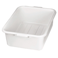 Tote Box, 21-1/2 in; x 15-3/4 in; x 7 in, pebbled finish outside, reinforced handles, stackable, dishwasher safe, high density polyethylene, white, Made in USA, FDA approved, NSF