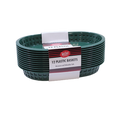 Cash & Carry Chicago Baskets, 10-1/2 in; x 7 in; x 1-1/2 in, oval, heat resistant up to 150°F/65°C, heatlamp/dishwasher/microwave safe, plastic, forest green, Made in USA ,12 per pack