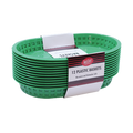 Cash & Carry Chicago Baskets, 10-1/2 in; x 7 in; x 1-1/2 in, oval, heat resistant up to 150°F/65°C, heatlamp/dishwasher/microwave safe, plastic, green, Made in USA ,12 per pack