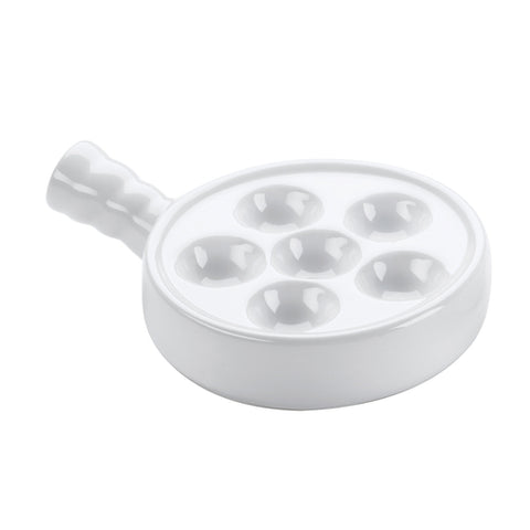 Escargot Plate, 5-3/10" dia. x 1-4/5"H, 6-hole, with handle, stoneware, white