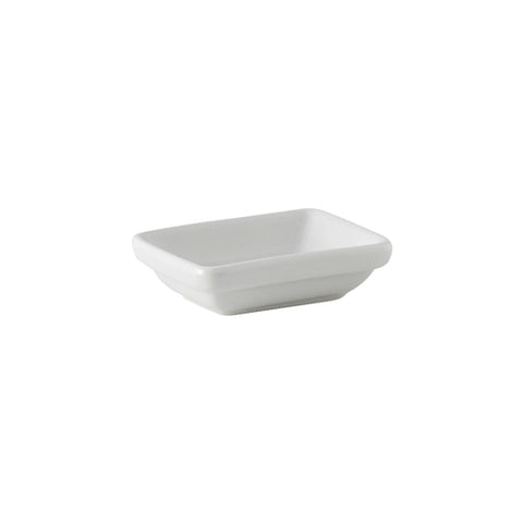 Sauce Dish, 2 oz., 3-3/8" x 2-5/8" x 1"H, rectangular, microwave & dishwasher safe, oven proof, fully vitrified, lead-free, DuraTux®©, Porcelain White SOLD BY DOZEN
