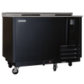 The EBC-50-HC by Enhanced Refrigeration is a 50"-wide bottle cooler designed to keep beverages ice-cold through even the busiest service hours. Its durable black exterior and stainless steel top create a professional look that integrates seamlessly into any bar setup.