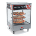 Pizza Merchandiser, 33-7/8" x 18-1/2" x 18-1/2", rotating, 3 tier, 12" diameter racks, stainless steel construction, tempered glass case, illuminated interior, water reservoir, thermostat control up to 200°F, includes signage, 120v/60/1ph, 1480 watts, 12.4 amps, NSF