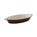 Welsh Rarebit, 8 oz., 8-1/8" x 4-3/8" x 1-1/4"H, oval, microwave & dishwasher safe, oven proof, fully vitrified, lead-free, ceramic, DuraTux®©, two-tone, Caramel/Eggshell SOLD BY DOZEN