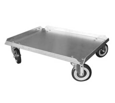 Dolly, heavy-duty, platform, for 18" x 26" bun pans/pizza boxes, 300 lb. capacity, 6" casters with brakes, aluminum, ETL