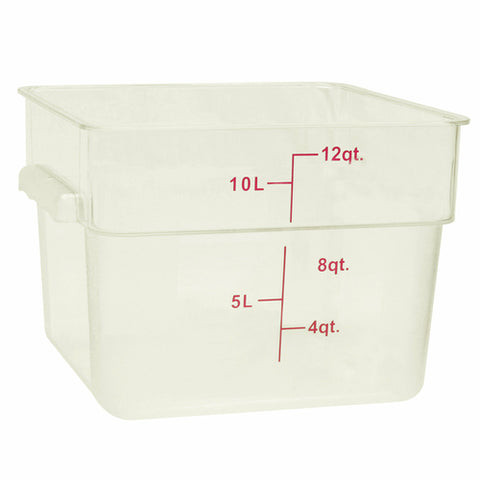 The Thunder Group PLSFT012PP is a 12-quart square food storage container constructed from durable white polypropylene. Its square profile stacks and stores neatly on shelving, making the most of every inch of your walk-in or prep area.