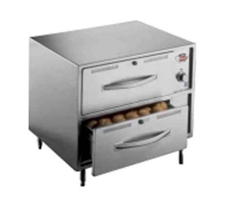The Wells RW-2HD is a freestanding double warming drawer unit built for countertop use in demanding commercial environments. Each drawer extends fully for easy loading and unloading, and accepts a standard full-size food pan right out of the box.
