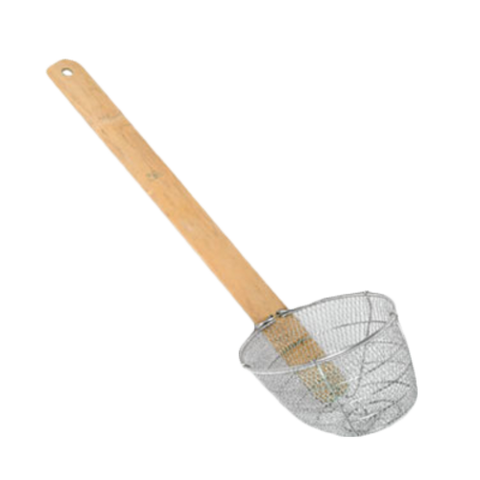 The Thunder Group SLNS005 noodle skimmer combines a deep stainless steel mesh basket with an extended bamboo handle to keep hands safely away from boiling liquids. Ideal for professional kitchens where speed and safety matter equally.