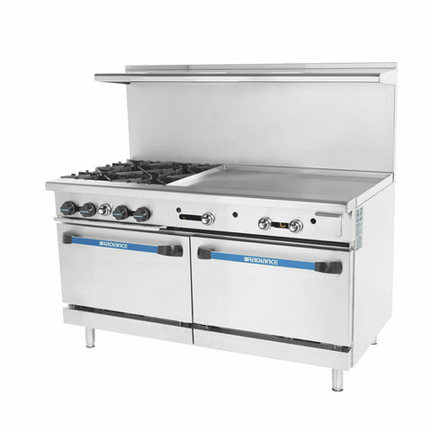 Designed for the most demanding kitchens, this range can sustain the busy hustle and bustle of any kitchen! Its multi-use combination will accomodate all of your menu cooking needs. The high quality stainless steel and heavy welded frame construction will provide years of maintenance-free use. It's equipped with a fully adjustable oven thermostat providing temperatures from 250-550ºF. And its high-efficiency, thermostat controlled griddle will provide faster cooking and recovery, but use less gas!