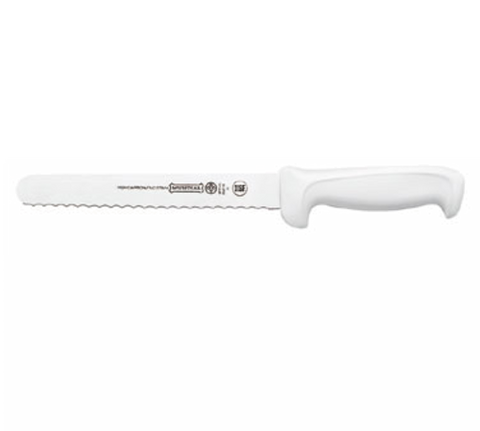 Safety "Sub Shop" Slicer Knife, 8", serrated edge, high carbon/no stain blade, molded white polypropylene handle, treated with sanitized antimicrobial protection, NSF (snap)